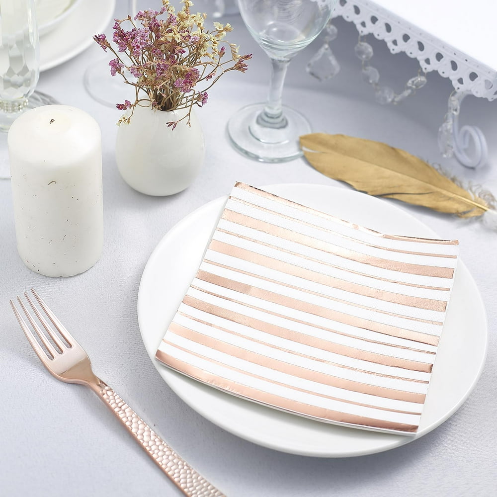 Efavormart 20 Pack 3 Ply Metallic Rose Gold Striped Paper Napkins Napkins Rose Gold parcourez notre sélection de napkins rose gold : check out our rose gold napkins selection for the very best in unique or custom, handmade pieces from our party & gifting shops. 100 pack rose gold satin napkins and napkin rings set, 12 x 12 inch silky soft cloth napkins set of 50, square satin. Vous y trouverez. Napkins Rose Gold.